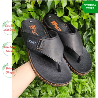 Dép xỏ ngón da nam cao cấp donavy khóa kiểu đế doctor may dấu x chắc chắn bao đi nước D.KKDO