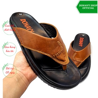 Dép xỏ ngón nam da bò thật 100% donavy, kiểu quai kép 02 lớp da bò, thiết kế cực kỳ thời trang, may đế chắc chắn D.7X