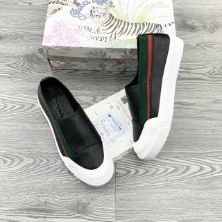 Giày Slipon Lười Dolce Da Phối Vạch Chun Chữ Dập Nổi GS24P
