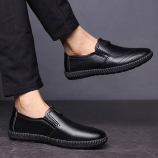 Giày mọi nam giày lười da PU khấu đơn giản 2 màu Đen Và Nâu