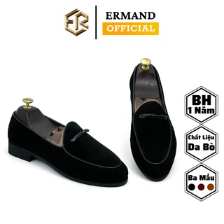 Giày lười nam da lộn ERMAND da bò thật bảo hành 1 năm kiểu dáng Belgien Loafer sành điệu - Mã T140