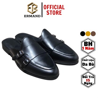 Giày sục nam ERMAND da bò thật bảo hành 1 năm kiểu dáng Double Monk Strap Slipper hiện đại - Mã T32