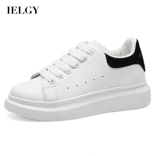 Giày IELGY bằng da màu trắng thiết kế đơn giản phong cách Hàn Quốc hợp thời trang