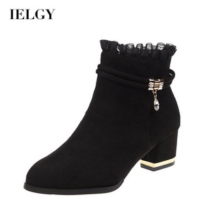 Giày bốt ngắn IELGY gót dày có dây khóa kéo bên hông cổ điển dành cho bạn nữ