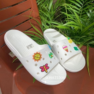 Tặng jibit, Dép lê Classic Trắng Full êm nhẹ, đế ma sát chống trơn trượt cho nam nữ