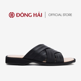 Dép cao gót nữ Đông Hải da bò cao cấp thiết kế quai đan chéo to bản thon chân cao 3cm - D5684