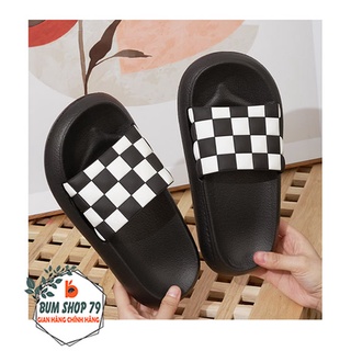 Dép bánh mì nam nữ quai ngang sọc caro phong cách Hàn Quốc, Dép đế bánh mì họa tiết Caro kiểu Hàn Quốc siêu Hot