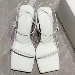 Giày sandal nữ mã LTS22 mũi vuông cao 7cm có 2 màu trắng và đen