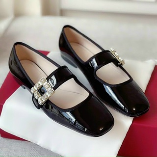 Giày búp bê nữ đế bằng mũi vuông da bóng quai ngang đính đá phong cách Hàn Quốc trẻ trung - Mã G56