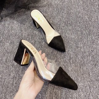 Guốc quai mica gót trụ trong lõi cùng màu - 6P