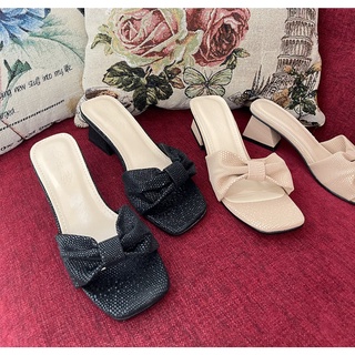 Guốc da nhám thắt nơ kiểu mới gót trụ thấp - 4P