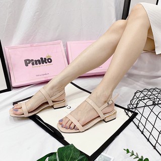 Sandal da mịn quai ngang nhún gót trụ thấp - 3P
