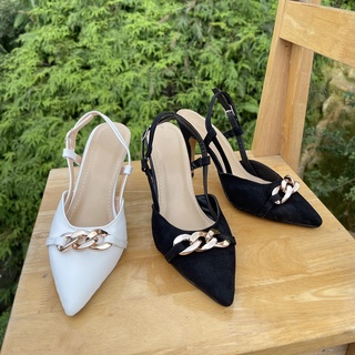 Sandal bít mũi nhọn dây xích ngang gót đũa - 7P