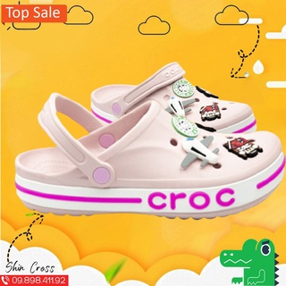 DÉP CÁ SẤU CROCS HỒNG ĐẾ TRẮNG size 35 36 37 38 39 40 tặng 12 sicker