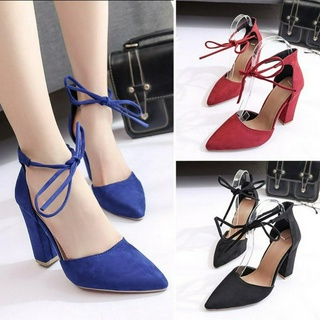 Giày Cao Gót TTC6 Mũi Nhọn Phối Dây Phong Cách Hàn 5cm