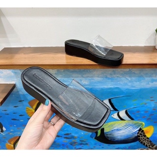 Dép Sandal cao gót quai trong gót dẹt trong 9p cực tôn dáng kèm ảnh thật
