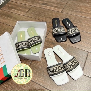 Dép bản ngang chữ hiệu thêu nổi xinh xắn