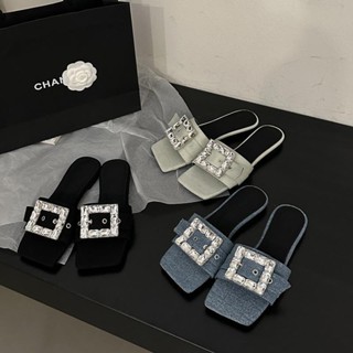 Dép Sandal Đế Bằng Quai Đính Đá Thời Trang Xuân Hè 2023 Phong Cách Pháp Mới Cho Nữ