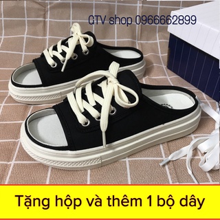 Tặng hộp và 1 bộ dây dự phòng - Giày sục hở mũi 2 mẫu siêu xinh, vải canvas, độn cao 3,5cm, size 35 đến 39. .