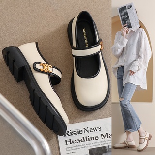 Giày Da Đế Dày Phong Cách Retro Mới Cho Nữ Cỡ 35-42