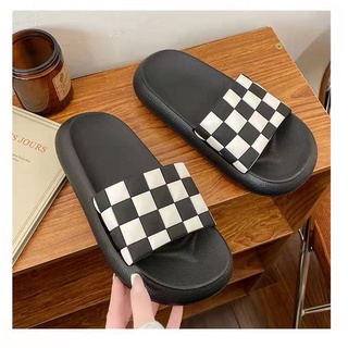 Dép nữ đế bánh mì, dép quai ngang kẻ caro chất liệu cao su non siêu êm size từ 36-41