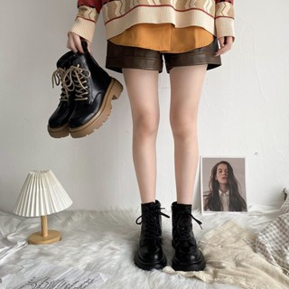 Bốt da nữ, boot nữ đế độn cổ lửng phong cách Hàn Quốc chất liệu da PU cao cấp đế cao su độn 5cm