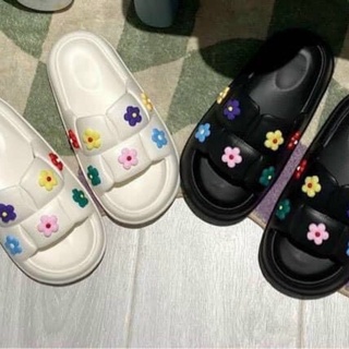 Dép Bánh Mì Đế Cao Sticker Hoa, Dép quai ngang nữ eva cao cấp không thấm nước.