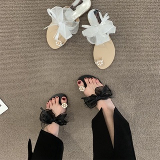 Giày Sandal Gót Thấp Hở Ngón Đính Nơ Phong Cách Thời Trang Xuân Hè Dành Cho Nữ