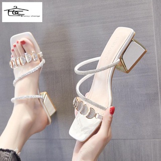 Giày Sandal Cao Gót Mũi Vuông Đính Đá Thời Trang Mùa Hè