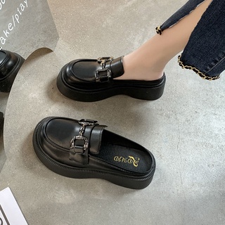 Jiashucheng Giày Sandal Đế Xuồng Dày Màu Đen Phong Cách Harajuku Anh Quốc Dễ Phối Đồ Thời Trang Mùa Hè Cho Nữ
