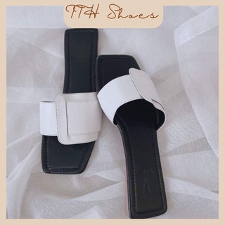 Dép quai ngang nữ dây chéo rít nhiều màu chất da mềm mại mang êm chân phong cách dễ thương bigsize - TTH_SHOES