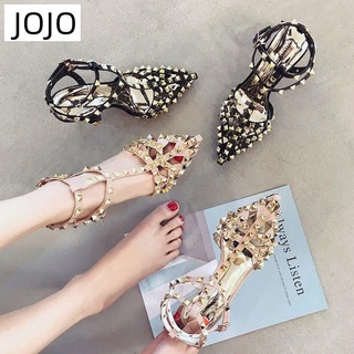 Giày Sandal Mũi Nhọn Bằng Da Đính Đinh Tán Thời Trang Mùa Hè Cho Nữ