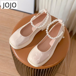 Giày Da Gót Dày Vừa Đính Ngọc Trai Phong Cách Pháp Thời Trang Mùa Thu Cho Nữ