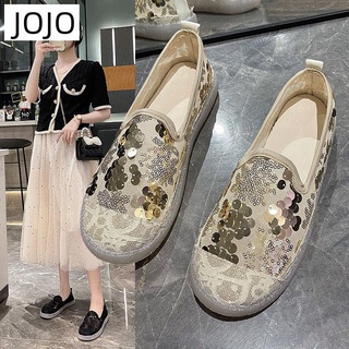Giày Búp Bê Đế Bằng Đính Kim Sa Lấp Lánh Thời Trang Mùa Hè Cho Nữ