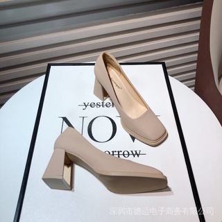 7cm Giày Cao Gót Da Mềm Mũi Vuông Phong Cách Hàn Quốc 2023 Cho Nữ