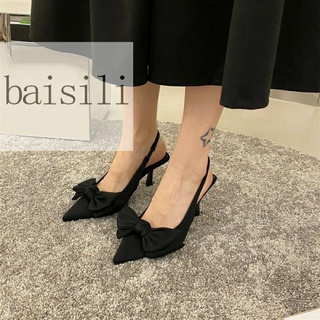 GIÀY THỜI TRANG BAISILI - SỤC NỮ KẾT NƠ XINH XẮN - GIÀY CAO GÓT HỞ HẬU THUN 7 PHÂN BG220912