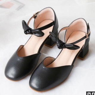 Giày Cao Gót Nữ 5p Gót Vuông Có Nơ Điệu Đà Mã A1NBUOC