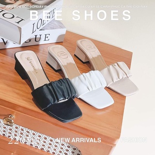 DÉP GUỐC CAO GÓT NỮ QUAI BÈO NHÚN ĐẾ VUÔNG CAO 3 PHÂN MÀU TRẮNG ĐEN SIÊU HOT