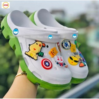 Dép nữ nam, Dép suc Duet Cross -Freeship + 12 sticker- Dép Quai Ngang nam nữ bít đầu hàn quốc đi mưa - trắng xanh lá
