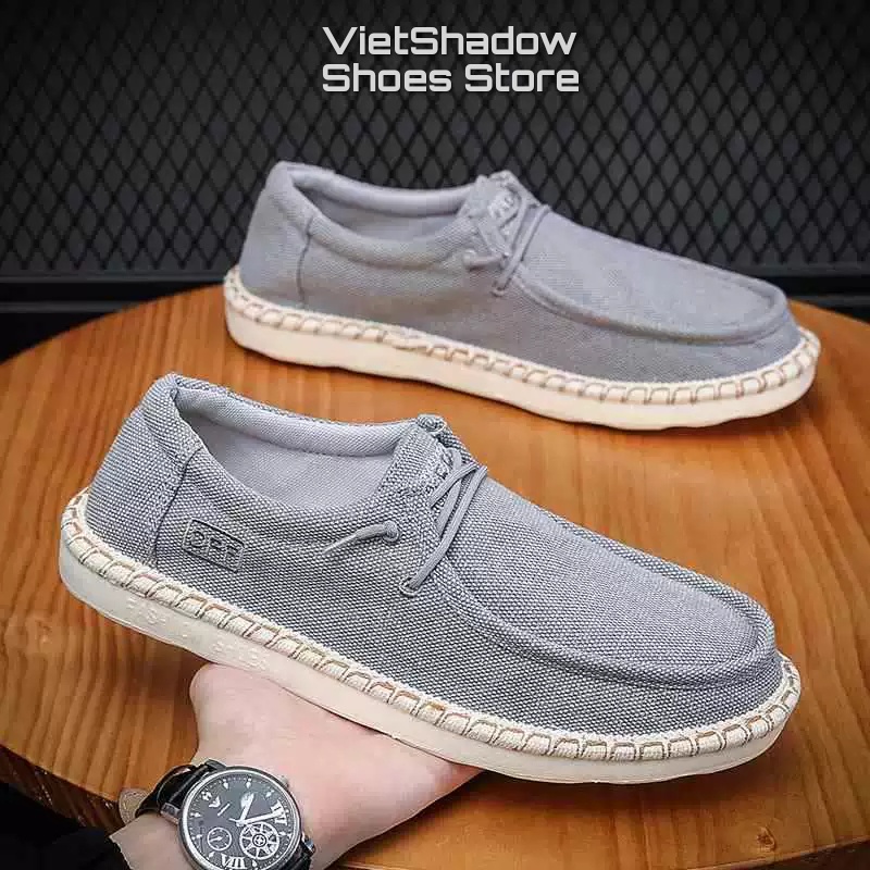 Giới thiệu Giày lười vải nam - Chất liệu vải bố 3 màu đen, ghi và kaki - Mã 891