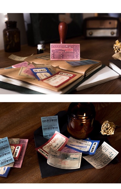 Giấy nhớ chủ đề tem, vé tháng vintage Một tập gồm ba mươi tấm Kích thước : 39*72mm Phong cách độc đáo không chỉ làm giấy nhớ còn có thể làm hình trang trí được