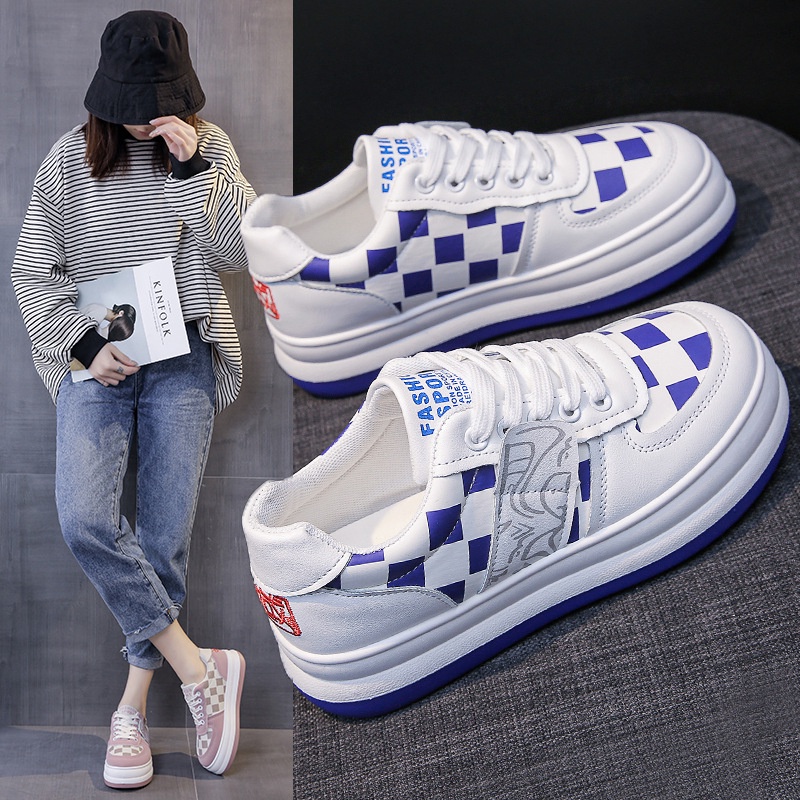 Giới thiệu Giày nữ ulzzang đế độn Họa tiết caro đế bánh mì màu mới Hot Trend 2022