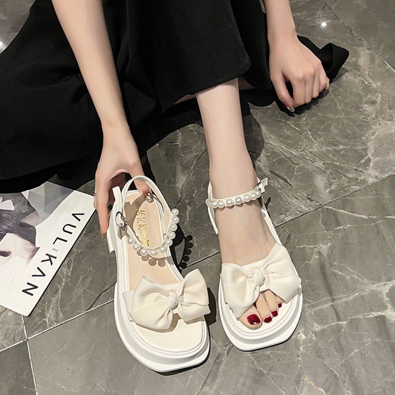 Giới thiệu Giày Sandal Cao Gót Đế Dày Đính Nơ Phong Cách Hàn Quốc Thời Trang Mùa Hè Hàng Mới Dành Cho Bạn Nữ
