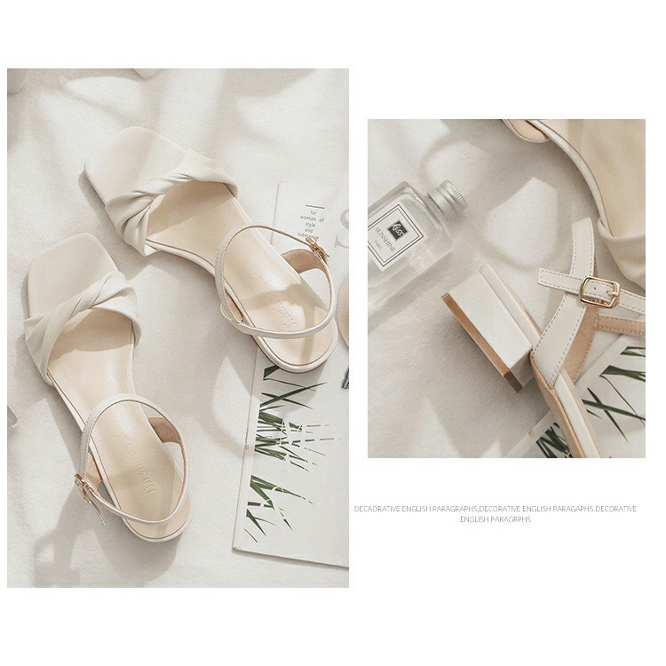Giới thiệu Giày Sandal cao gót nữ 4 phân da mềm thời trang phong cách vintage Hàn Quốc