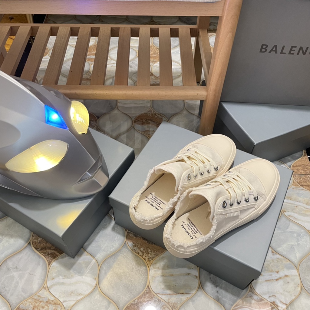 • Bông và cao su tẩy xóa • Mule • Mở ở phía sau • Logo Balenciaga in ở mép ngón chân • Kích thước dập nổi ở phía sau • 5 khoen ren-up vamp • Đế lưu hóa • Sản xuất tại Trung Quốc • Lau sạch bằng vải mềm Chất liệu: 100% cotton