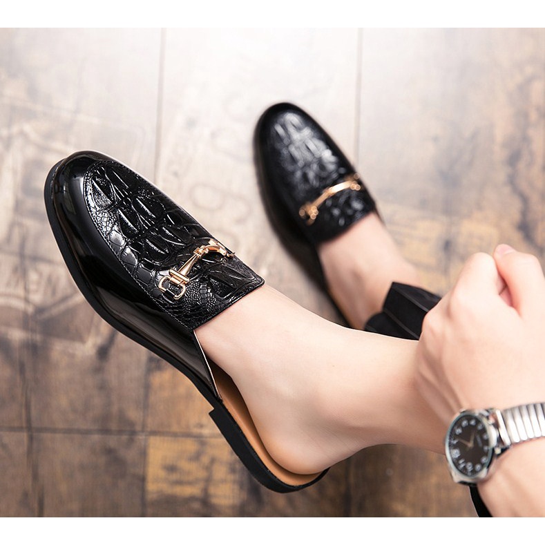 Giới thiệu Giầy sục nam-da bóng đính khuyên kim loại vẩy cá sâu