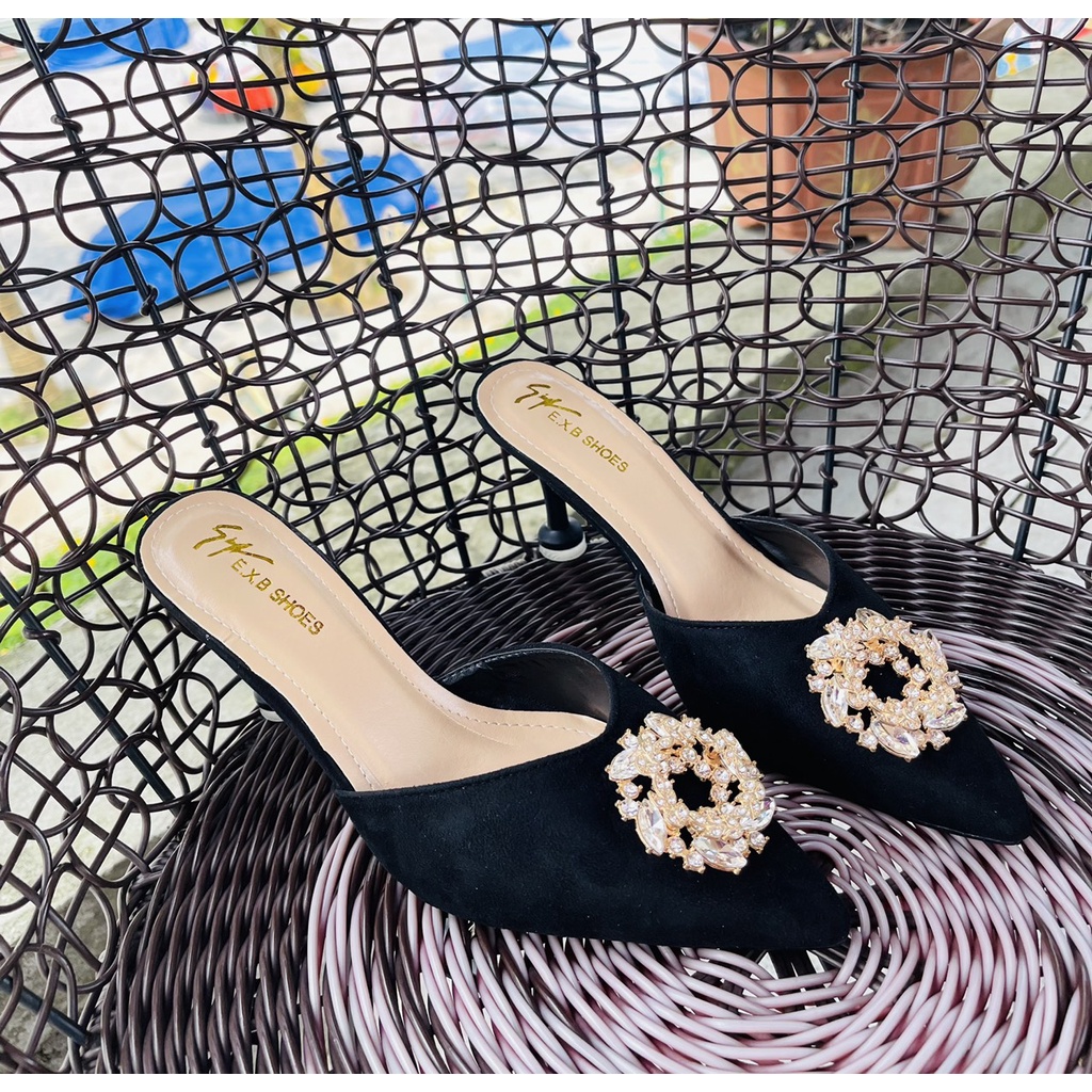 Giới thiệu Giày sục nỉ nhung nơ đá tròn và đá vuông - 6P