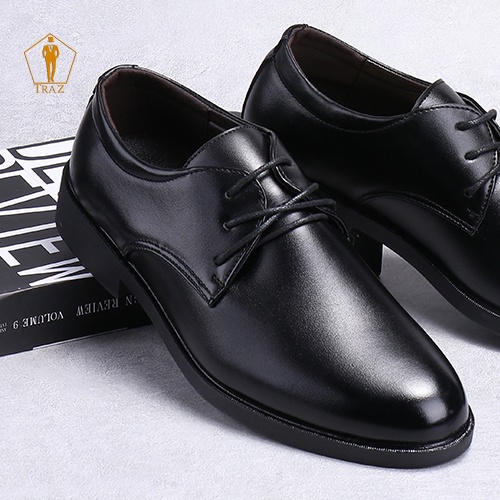 Giày Tây Âu Nam TRAZ Tăng Chiều Cao Dây Buộc Dành Cho Dân Công Sở, Chú Rể Màu Đen Da Bò Nhập Khẩu *TRAZ: Thương hiệu giày da nam được bảo hộ bời Cục Sở Hữu Trí Tuệ*