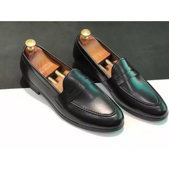 Giới thiệu Giày tây nam da mềm, đế khâu, giày lười tây phối đai thời thượng - mt đen lỳ