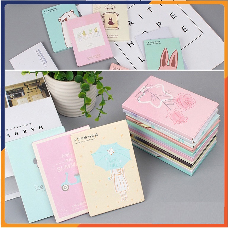 - Tên sản phẩm: Giấy thấm dầu - Trọng lượng: 10g - Sản phẩm có các mẫu như hình - Kích thước: 18x4cm - Sử dụng thấm hút dầu, mồ hôi trên da mặt. - Giúp da sạch thoáng, không nhờn, phòng tránh mụn - Phù hợp mọi loại da, đặc biệt là da dầu - Mỗi gói có 50 miếng, bao bì gói là giấy có in nhiều hình ngộ nghĩnh. Shop sẽ giao ngẫu nhiên bao bì